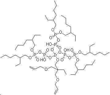Zirconate ZCA-N38(CAS:103455-10-3), Our model ZCA-N38(equivalent to Ken-React® NZ 38),ZCA-N38 is a neoalkoxy pyrophosphato zirconate coupling agent; it has a better thermostability compared to monoalkoxy zirconate.